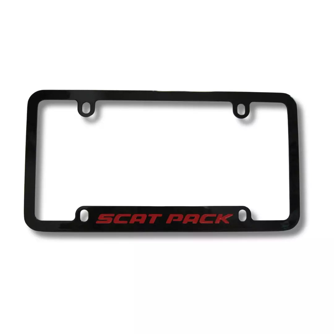Dodge Scat Pack Red Logo Black Zinc Metal License Plate Frame Official Licensed
