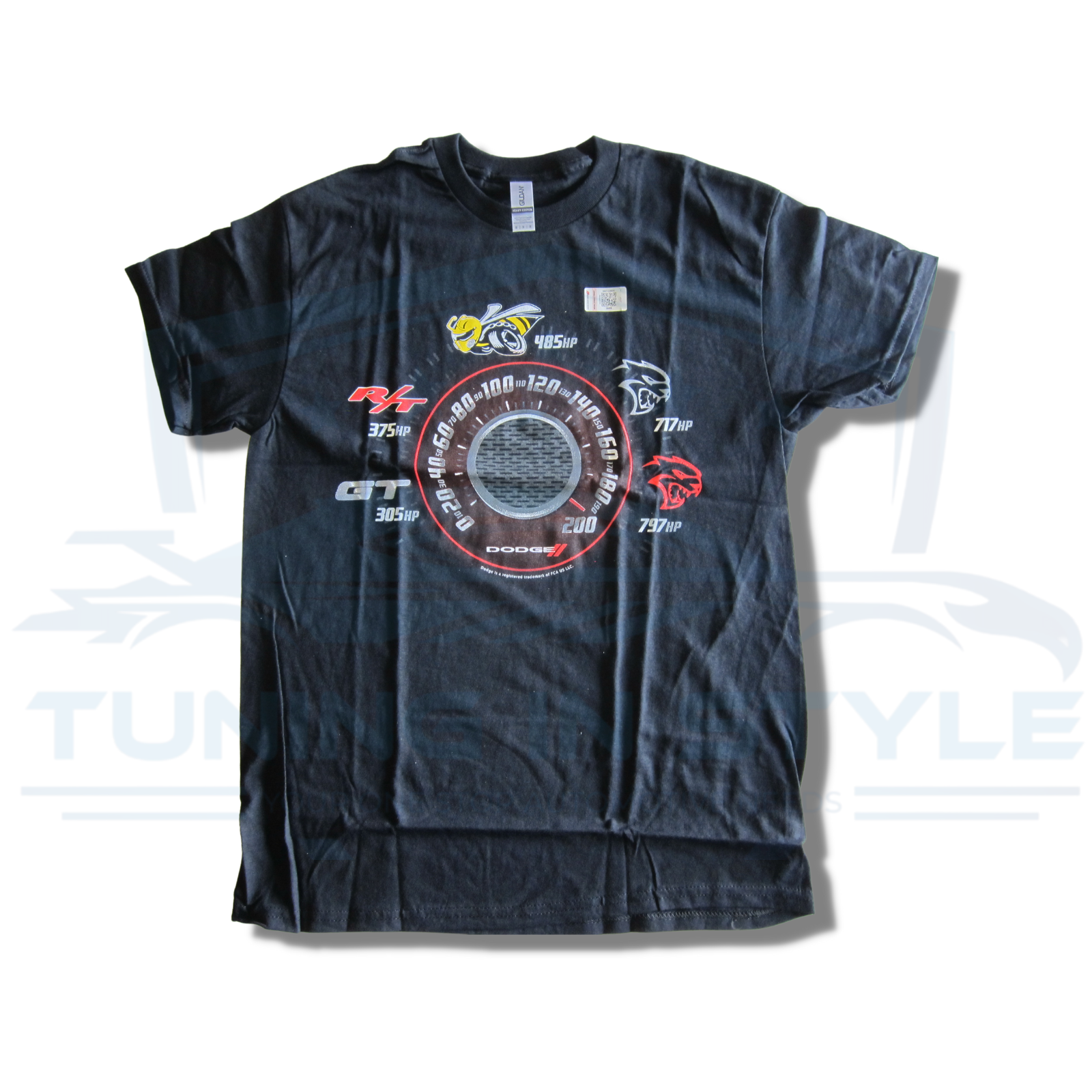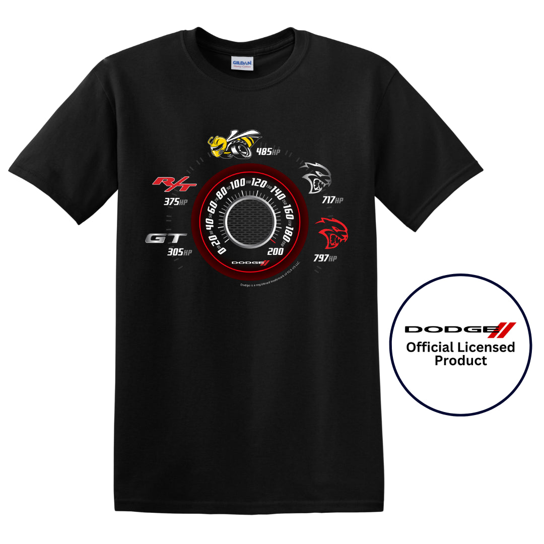 Dodge Speedometer Horsepower Logo Graphic Cotton T-Shirt Black Official Licensed