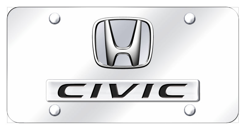 Dual Honda Civic (No Fill) License Plate - Chrome on Mirrored - Official Licensed