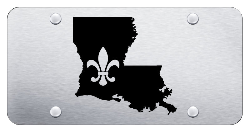 Fleur-De-Lis on LA Outline Plate - Laser Etched Black on Brushed Stainless - Official Licensed