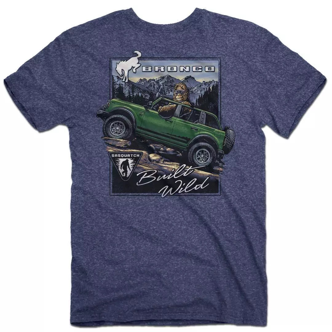 Ford Bronco Built Wide Sasquatch Graphic T-Shirt Heather Blue Official Licensed