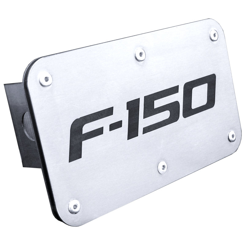 Trailer hitch plugs featuring laser etched logos that are mounted on a stainless steel sleeve and base for a durable accessory that will last for many years.
