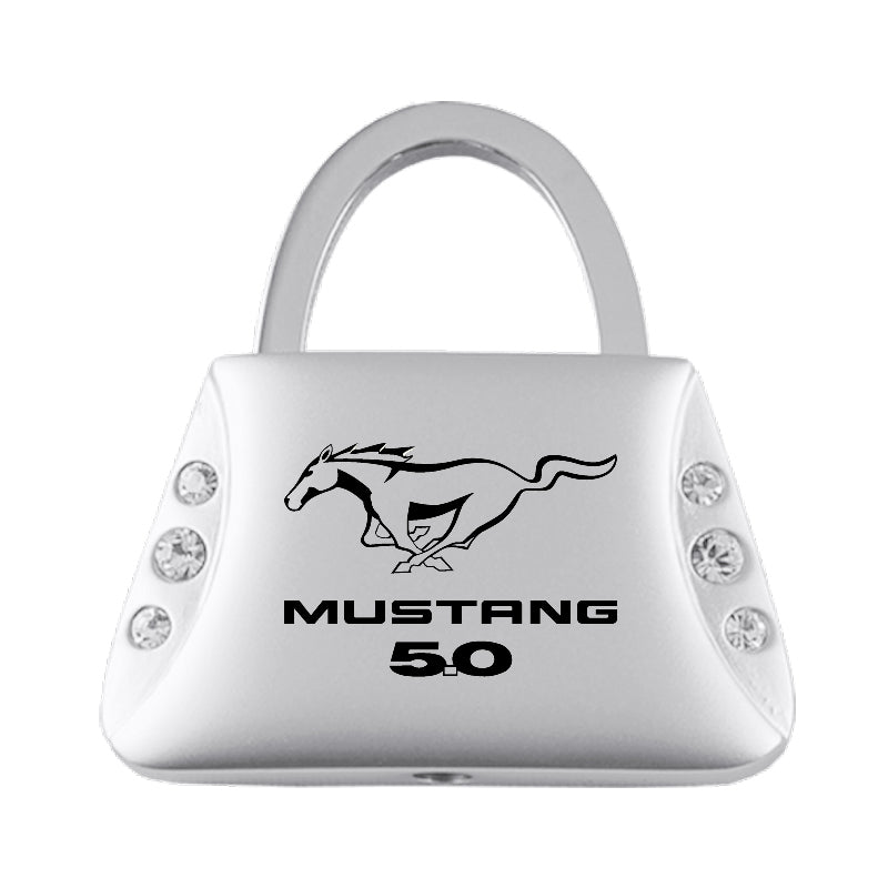 Ford Mustang 5.0 Jeweled Purse Key Chain Fob - Silver - Official Licensed
