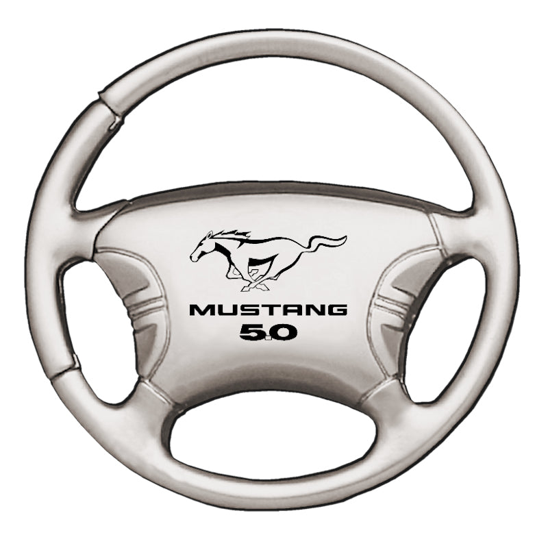 Ford Mustang 5.0 Steering Wheel Key Chain Fob - Silver - Official Licensed