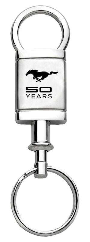 Ford Mustang 50 Years Satin-Chrome Valet Key Chain Fob - Silver - Official Licensed