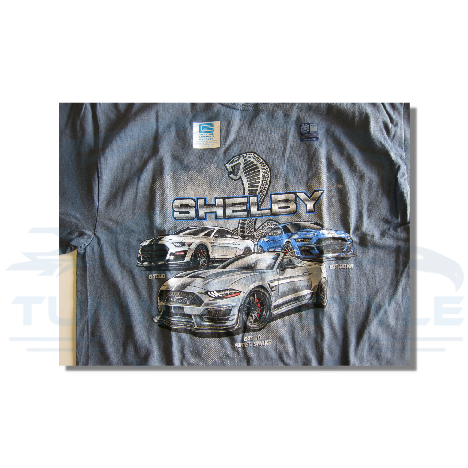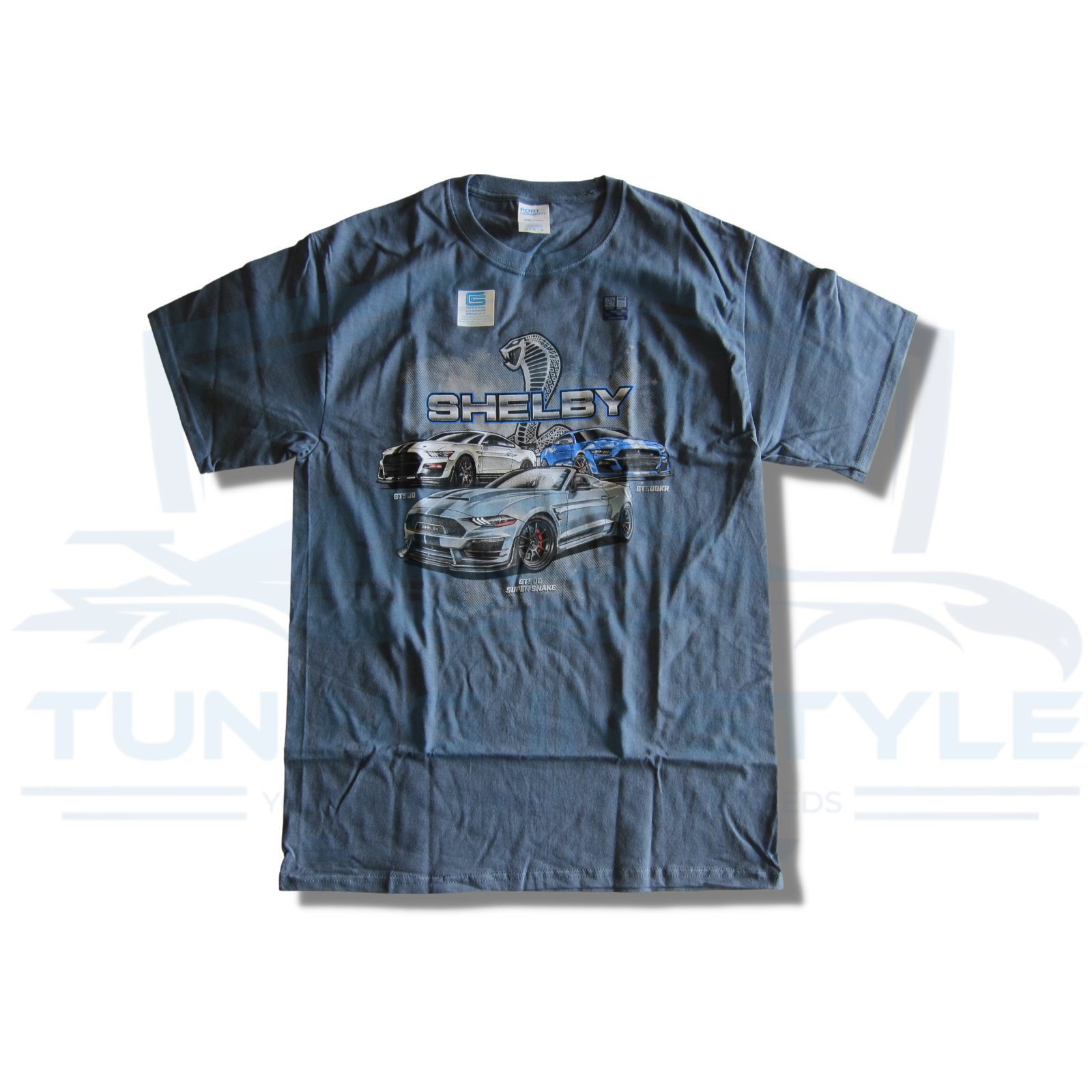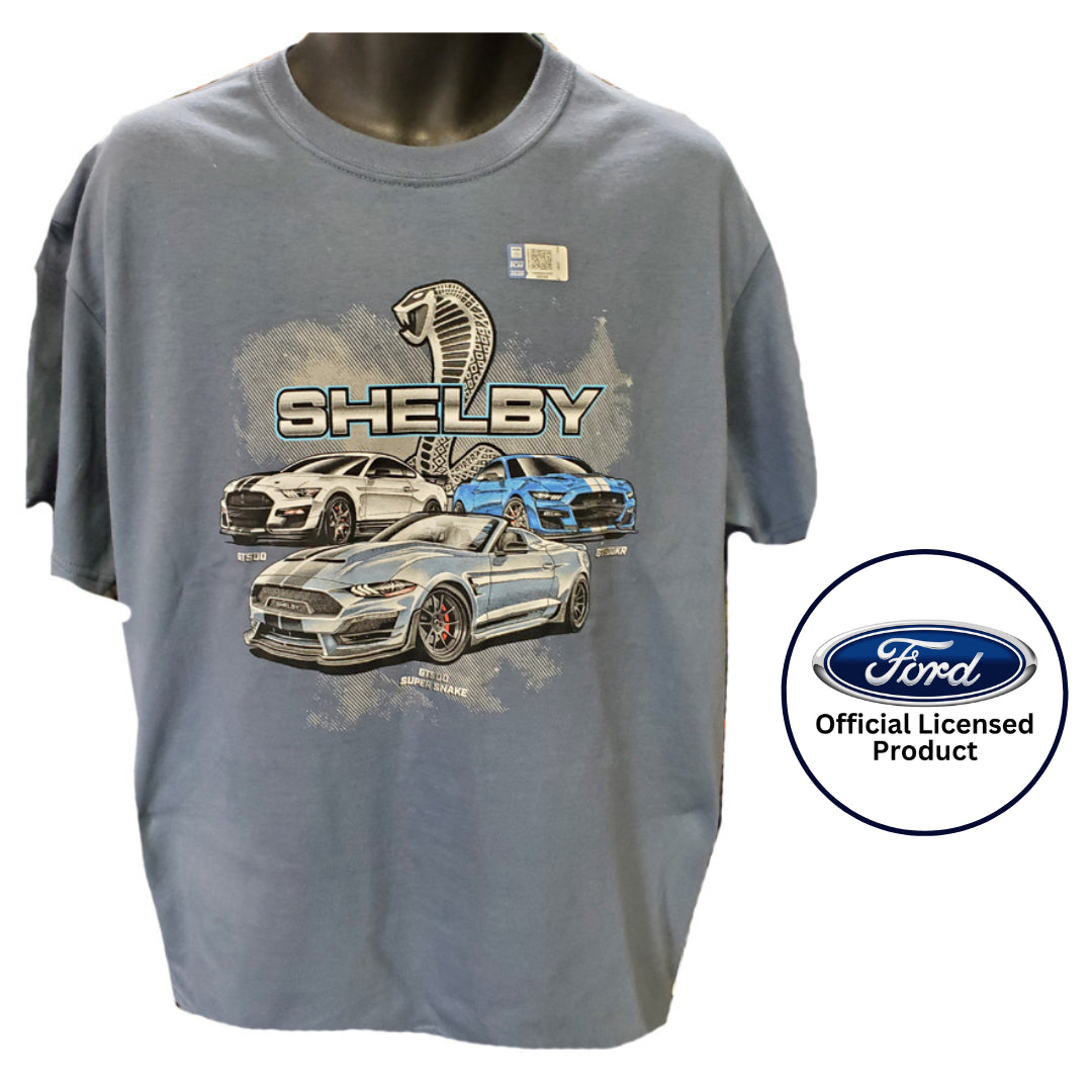 Ford Mustang GT500 Shelby Cobra Logo Cotton T-Shirt Steel Blue Official Licensed