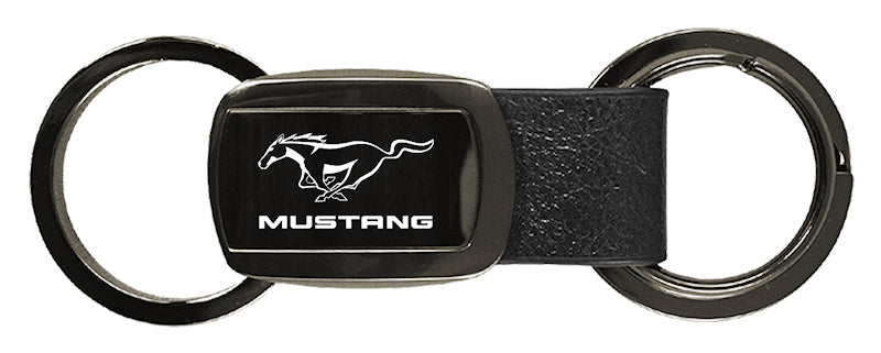 Ford Mustang Leather Tri-Ring Key Chain Fob - Gun Metal - Official Licensed