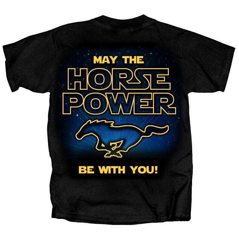 Ford Mustang May The Horse Power Be With You Cotton Preshrunk T-Shirt Black