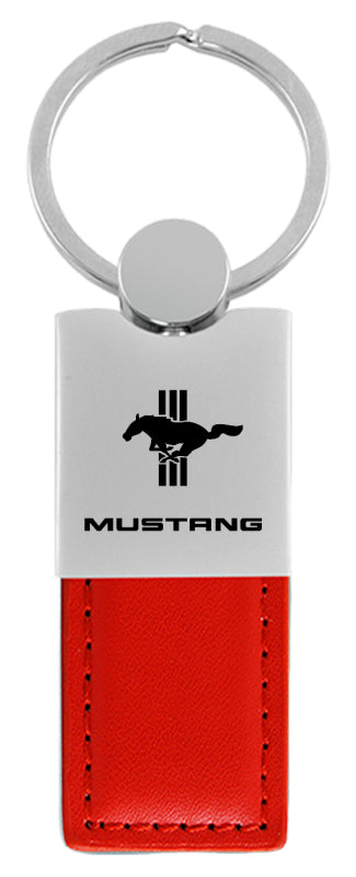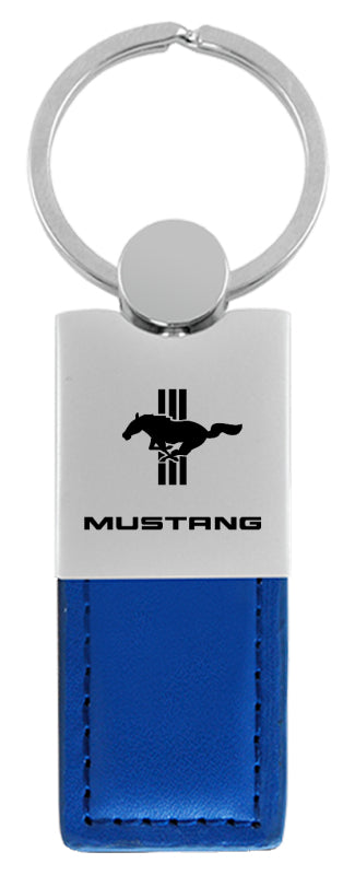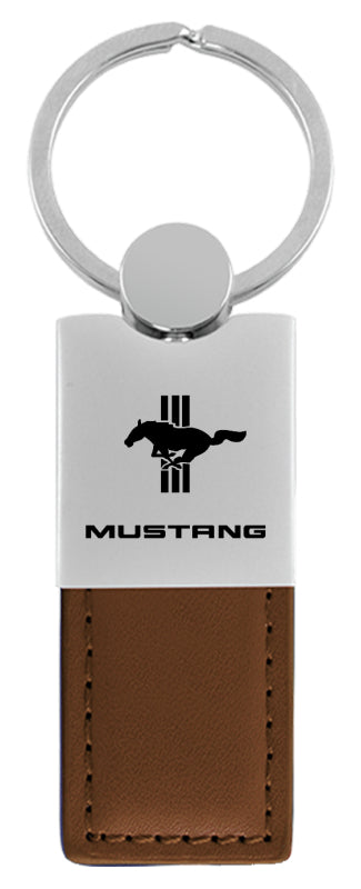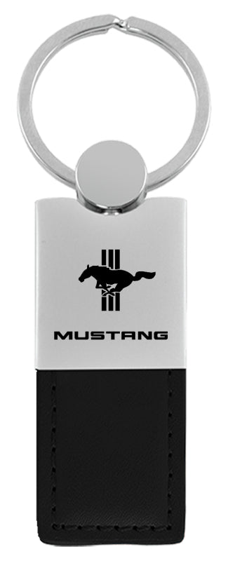 Ford Mustang Tri-Bar Duo Leather / Chrome Key Chain Fob - Official Licensed
