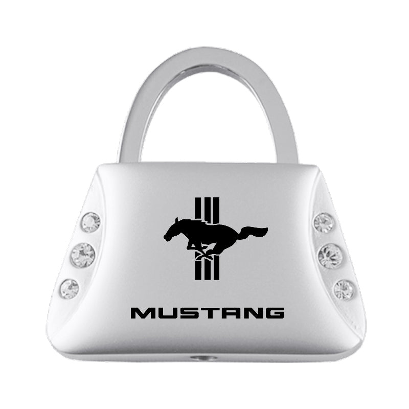 Ford Mustang Tri-Bar Jeweled Purse Key Chain Fob - Silver - Official Licensed