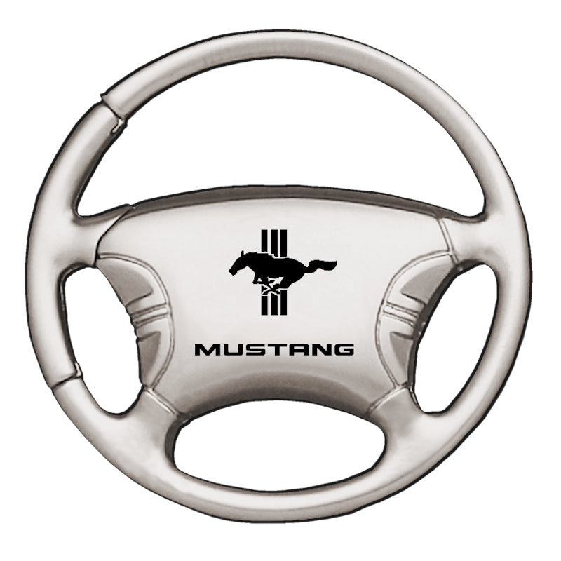Ford Mustang Tri-Bar Steering Wheel Key Chain Fob - Silver - Official Licensed