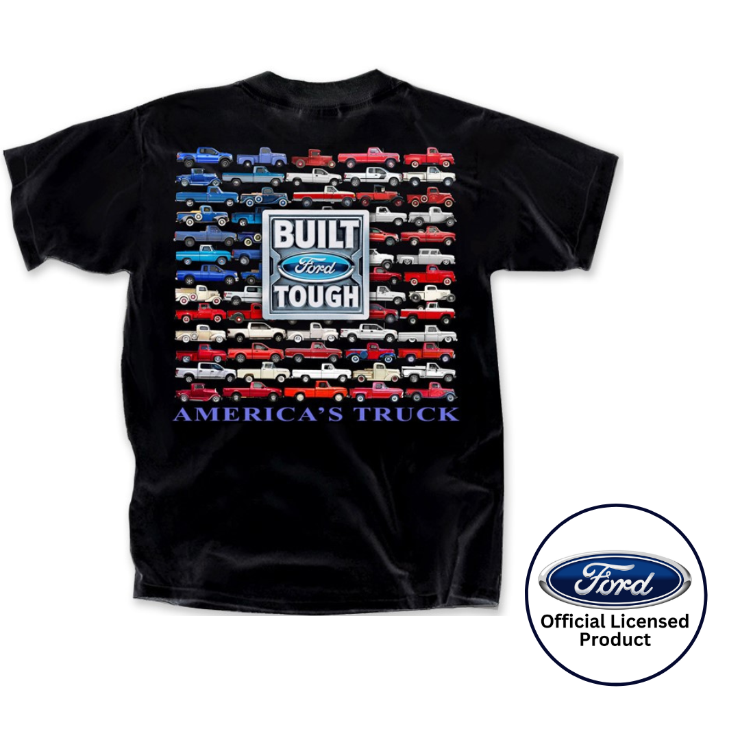 Ford Trucks Built Ford Tough US Flag Graphic Cotton Shirt Black Official License