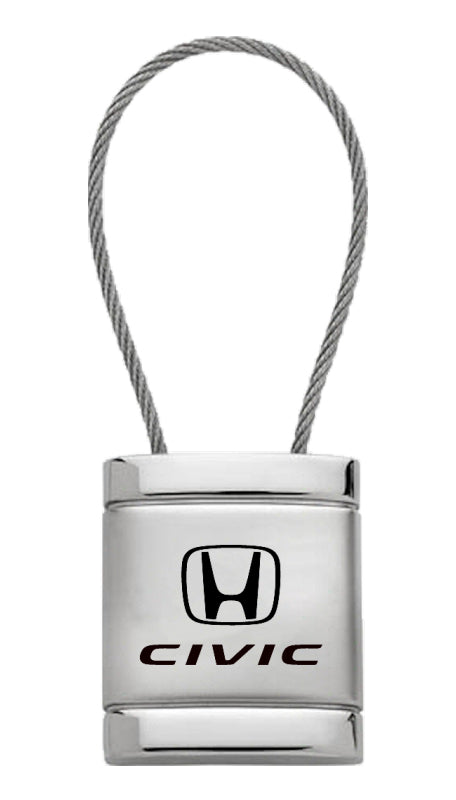 Honda Civic Satin-Chrome Cable Key Chain Fob - Silver - Official Licensed