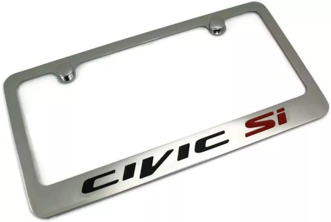 Honda Civic Si Logo Chrome Solid Brass License Plate Frame Official Licensed