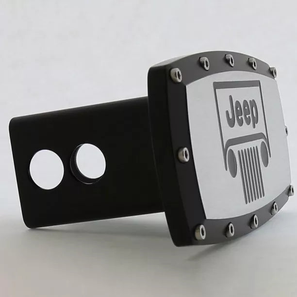 Jeep Emblem Engraved Logo Black Billet Trailer Tow Hitch Cover Official Licensed