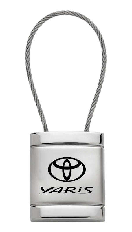 Toyota Yaris Satin-Chrome Cable Key Chain Fob - Silver - Official Licensed
