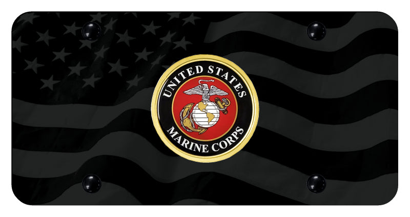 U.S.M.C. Badge License Plate - UV Subdued Wave Flag - Official License