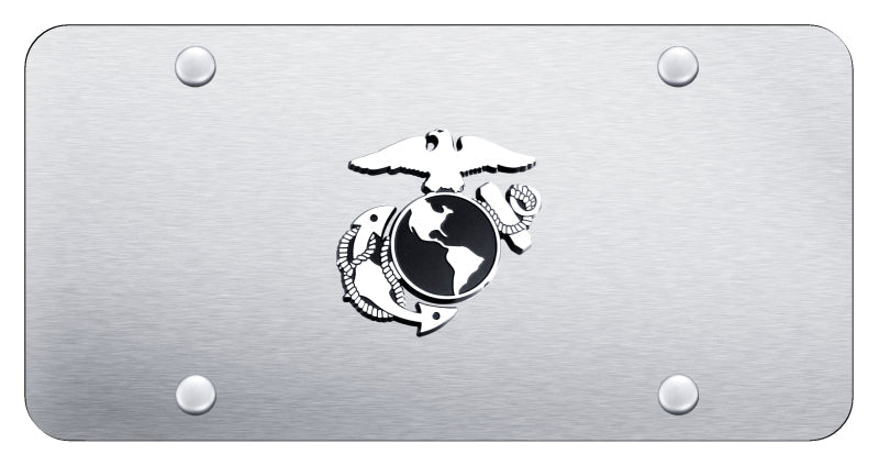 U.S.M.C. Insignia License Plate - Chrome on Brushed - Official License
