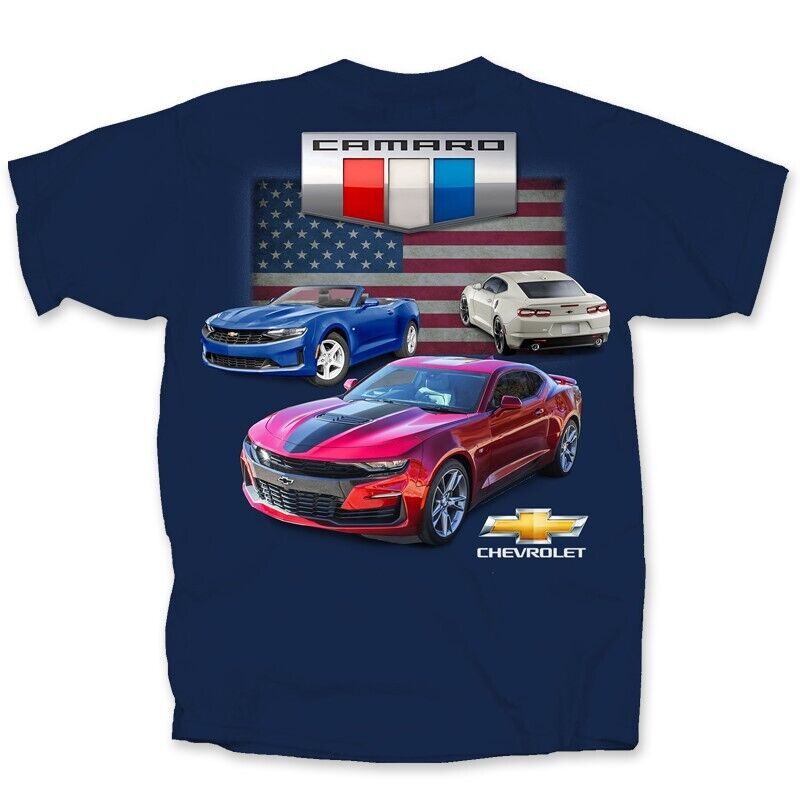 Vintage Chevrolet Camaro Car Auto Collection Cotton Preshrunk T-Shirt Blue